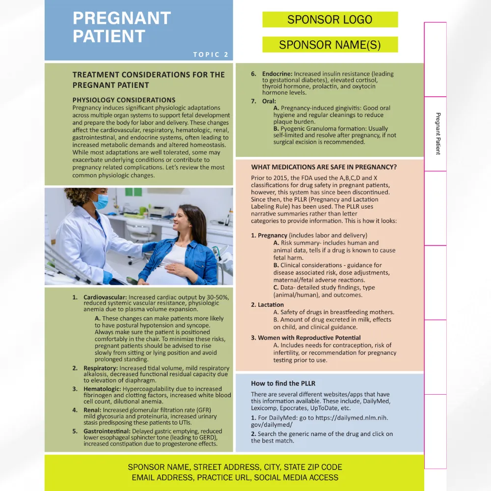 The sponsoring specialist’s practice is custom branded on the front of each new topic page and on the cover of the DQR binder that houses the educational content. This creates an organized, lasting reference that reinforces your presence and strengthens communication with your referrers.